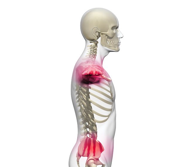 特に首の付け根や骨盤と背骨のつなぎ目部分に負担がかかることで、体幹のバランスが大きく崩れます。