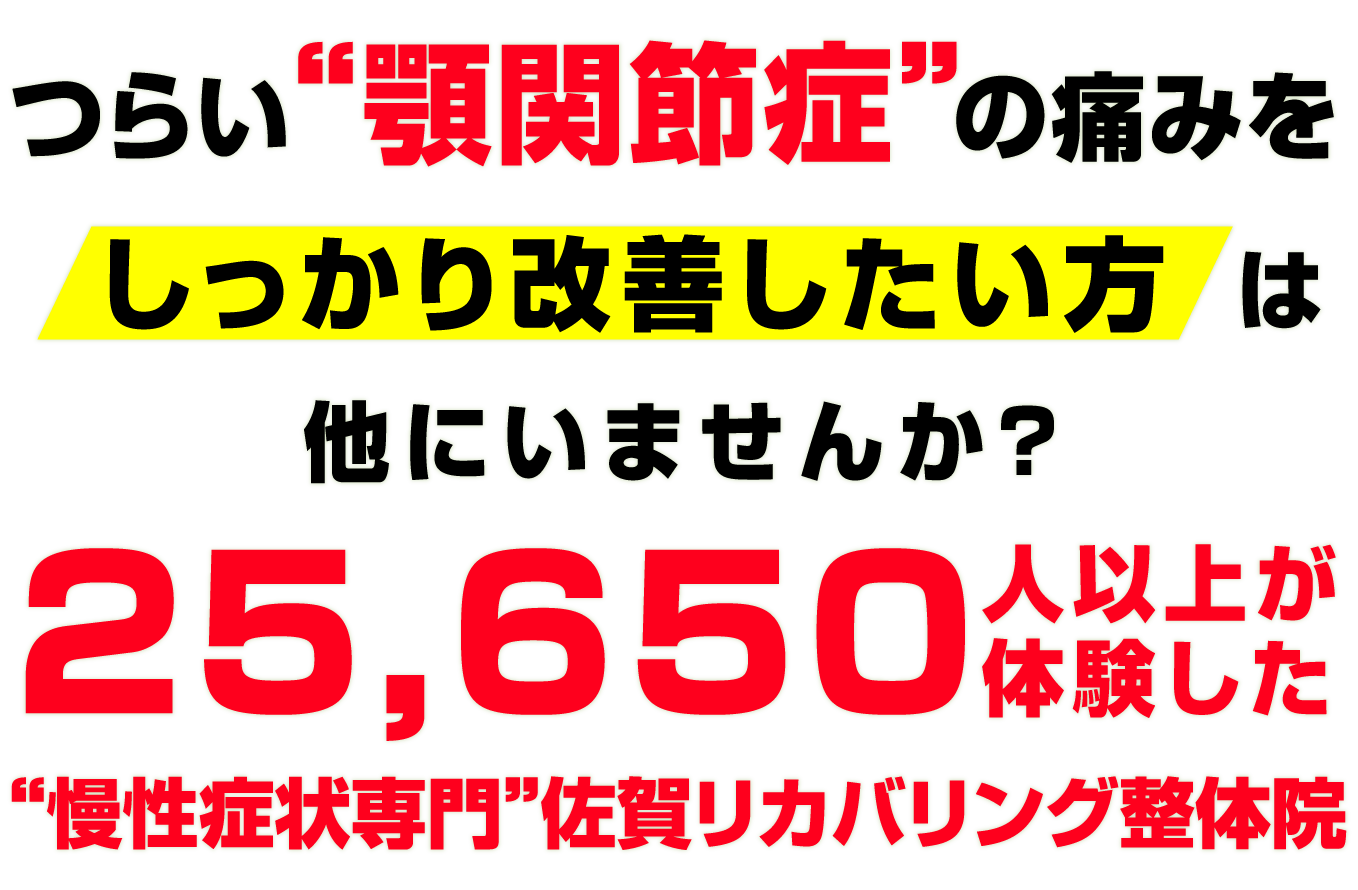 顎関節症のことなら佐賀の整体院 『佐賀リカバリング整体院 大財院』 にお任せください。