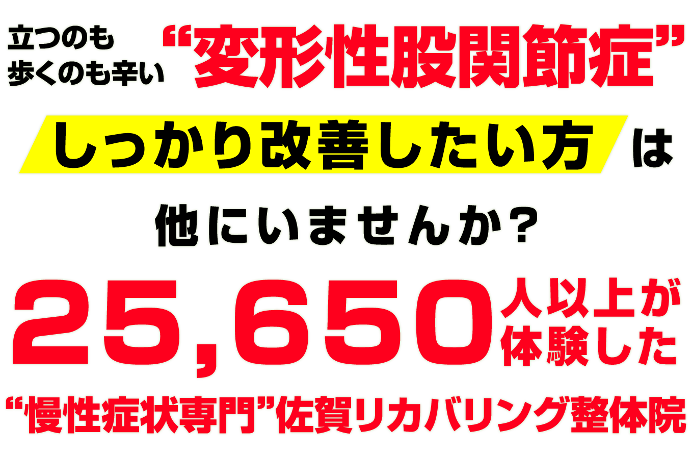 変形性股関節症のことなら佐賀の整体院 『佐賀リカバリング整体院 大財院』 にお任せください。